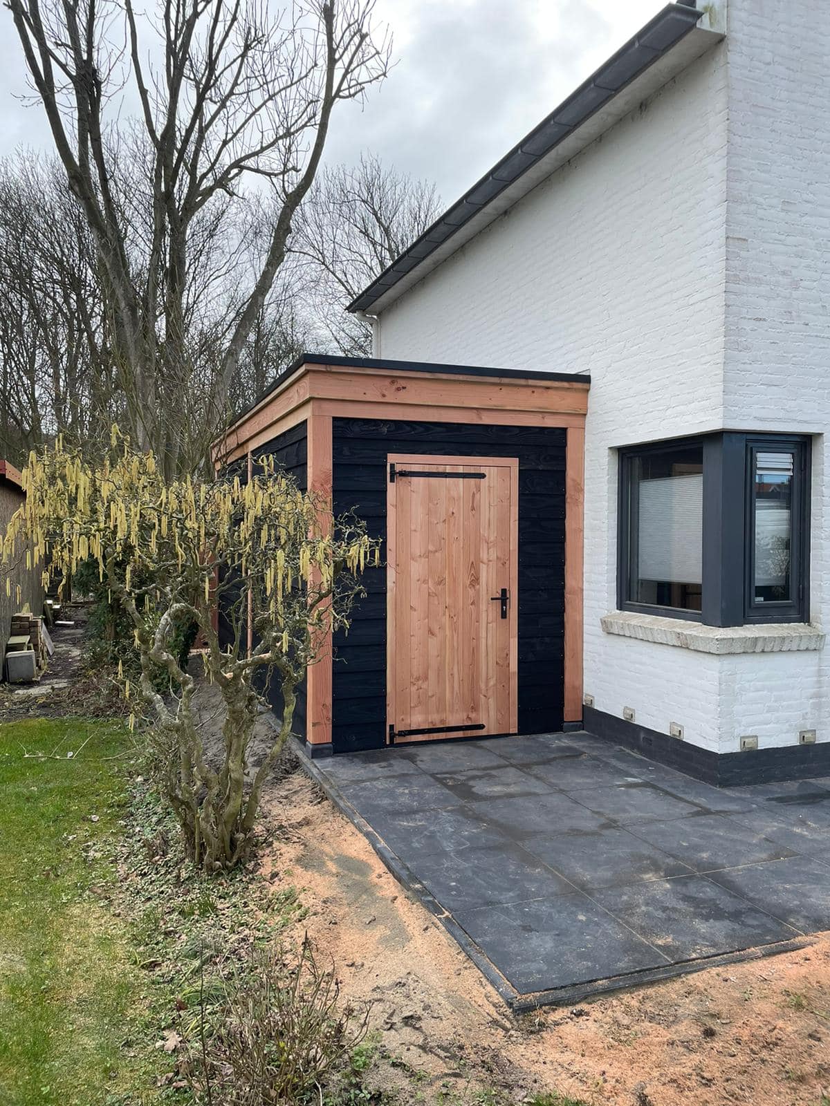 De berging is niet alleen functioneel, maar ook een echte meerwaarde voor het aanzicht van de woning. Doordat de constructie direct aan het huis is geplaatst, is deze eenvoudig toegankelijk en ideaal voor het opbergen van fietsen, tuingereedschap, haardhout of andere spullen die u graag droog en veilig opbergt.