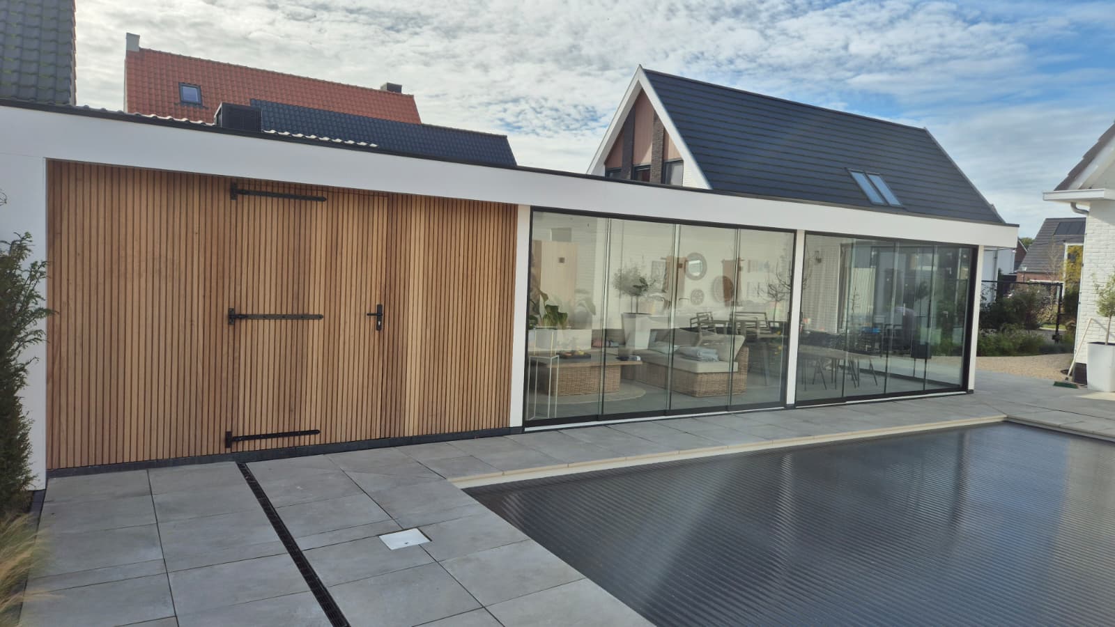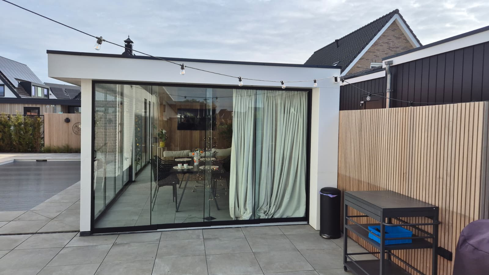 Voor onze klant in Vlissingen hebben we deze prachtige overkapping mogen realiseren. Met een overkapping als deze kun je het hele jaar door genieten van de tuin. Of het nu waait, regent of juist lekker zonnig is, je zit altijd goed in deze overkapping. Dankzij de glazen schuifwanden geniet je van volop licht en bepaal je zelf hoeveel beschutting je wilt.